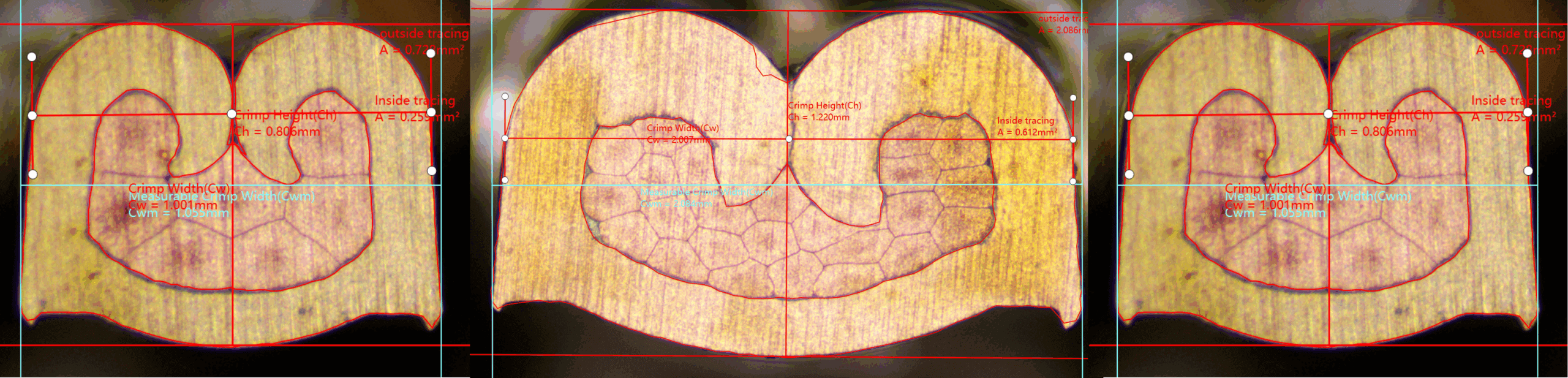 ✔ Crimp height = 0.806 mm (spec: 0.78 ± 0.02)